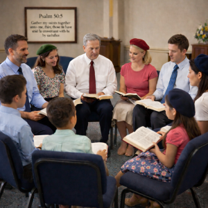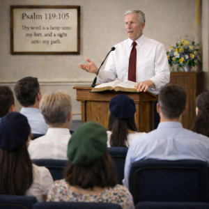 At the same time, an adult Bible ministry meeting is held on the main level. One man ministers from the Holy Scriptures for the instruction, encouragement, and spiritual guidance of the congregation. This responsibility of teaching is shared among several men of the assembly.