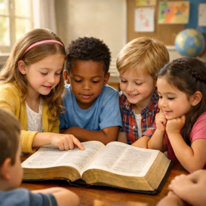 Sunday School begins with singing for the children. Following this, the children separate into classes held in the lower level and the outside trailer. Class time is approximately 30 minutes.
